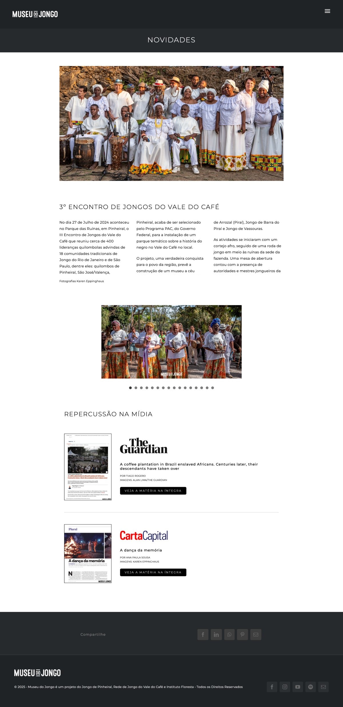 Designing the Museu do Jongo website was much more than a design project — it was an act of respect toward the memory, identity, and territory of the communities that remain vibrant and active.