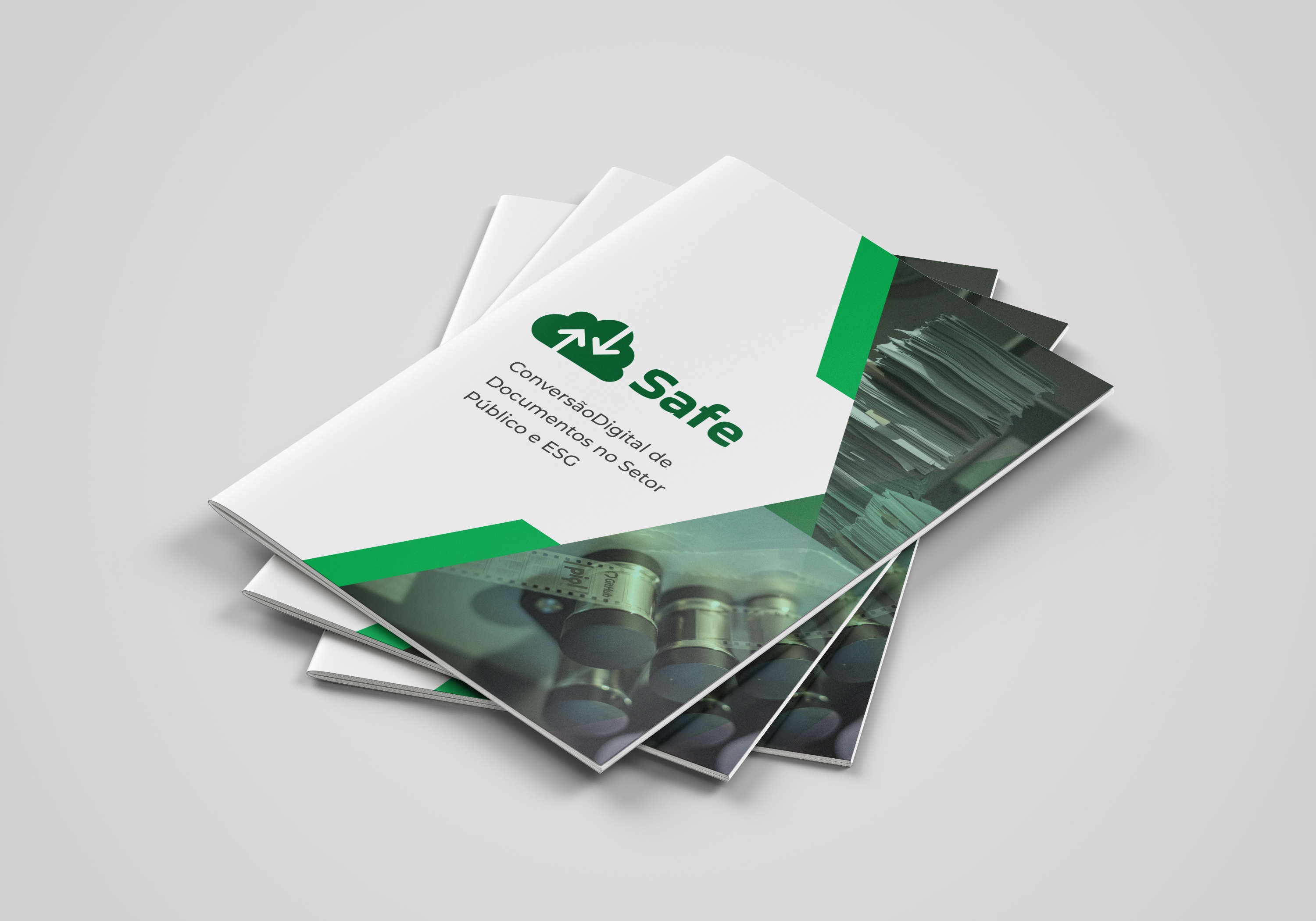 A Design Minds desenvolveu para a Safe Digital um folder no formato revista, com 12 páginas em tamanho A4, criado para comunicar de forma didática e visualmente impactante as soluções de digitalização, preservação e gestão documental oferecidas pela empresa.